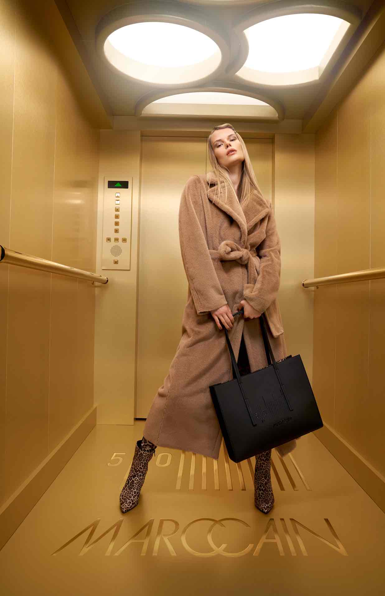Um die Kollektion entsprechend in Szene zu setzen, stellt das Modeunternehmen eine passende Imagekampagne mit dem international erfolgreichen deutschen Model Alena Blohm vor. Zentrales Element ist hierbei ein goldener Fahrstuhl. Indem er verschiedene Stockwerke passieren lässt, symbolisiert er die 50-jährige Zeitreise von Marc Cain.