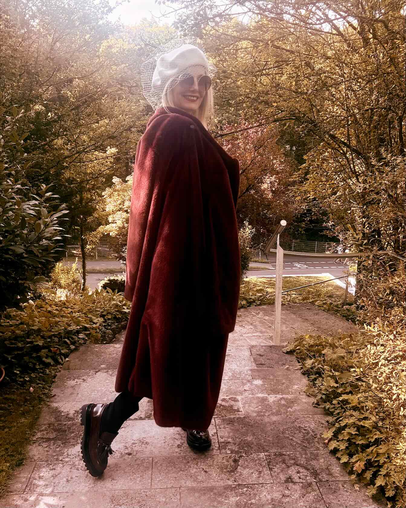 Bordeaux zählt in dieser Saison zu den Key Colors: stark im Ausdruck und elegant in der Wirkung. Der Fake-Fur-Mantel von Marc Cain bildet dabei das Centerpiece des Stylings. Er vereint Komfort mit Statement-Charakter und liefert genau die richtige Portion Luxus für jede Gelegenheit.