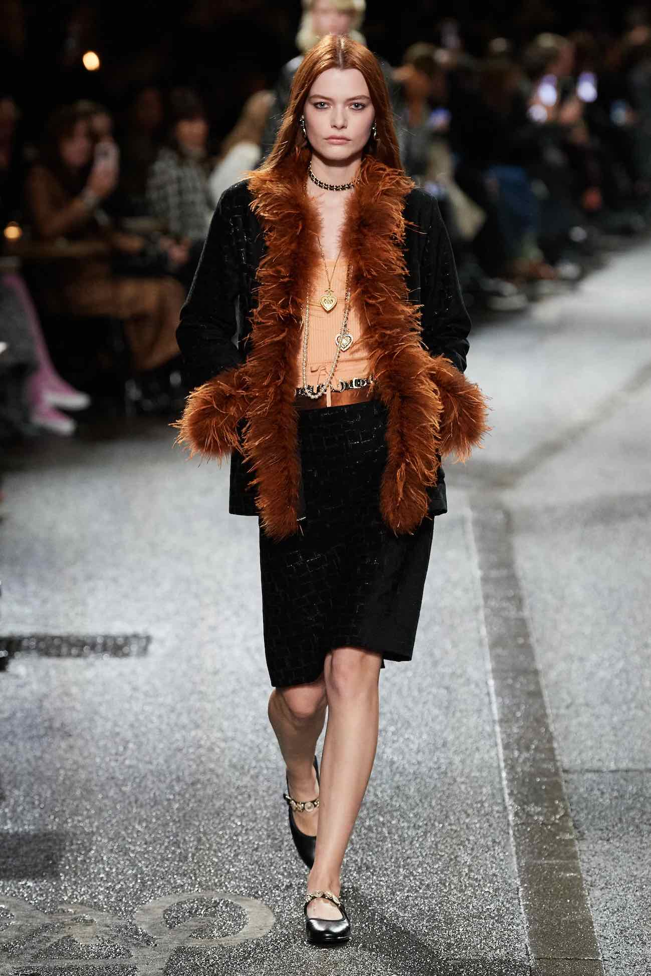 Virginie Viard´s Idee für diese Kollektion: Kleidung für starke, unabhängige Frauen in der realen Welt. Sie tragen flache Schuhe und fließende Silhouetten oder weitere Formen. Viard ist gut für sexy, aber sie kann auch elegant sein.