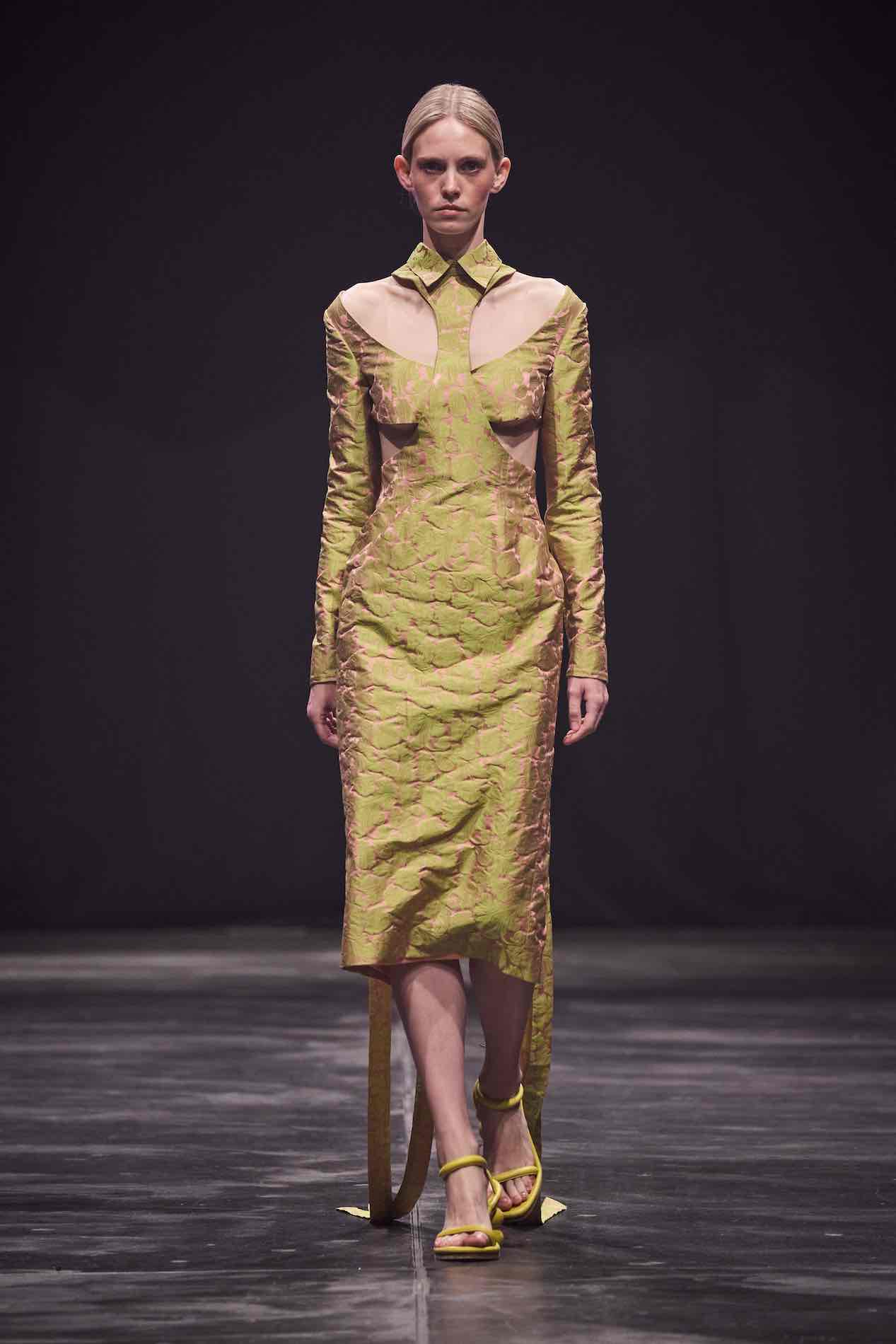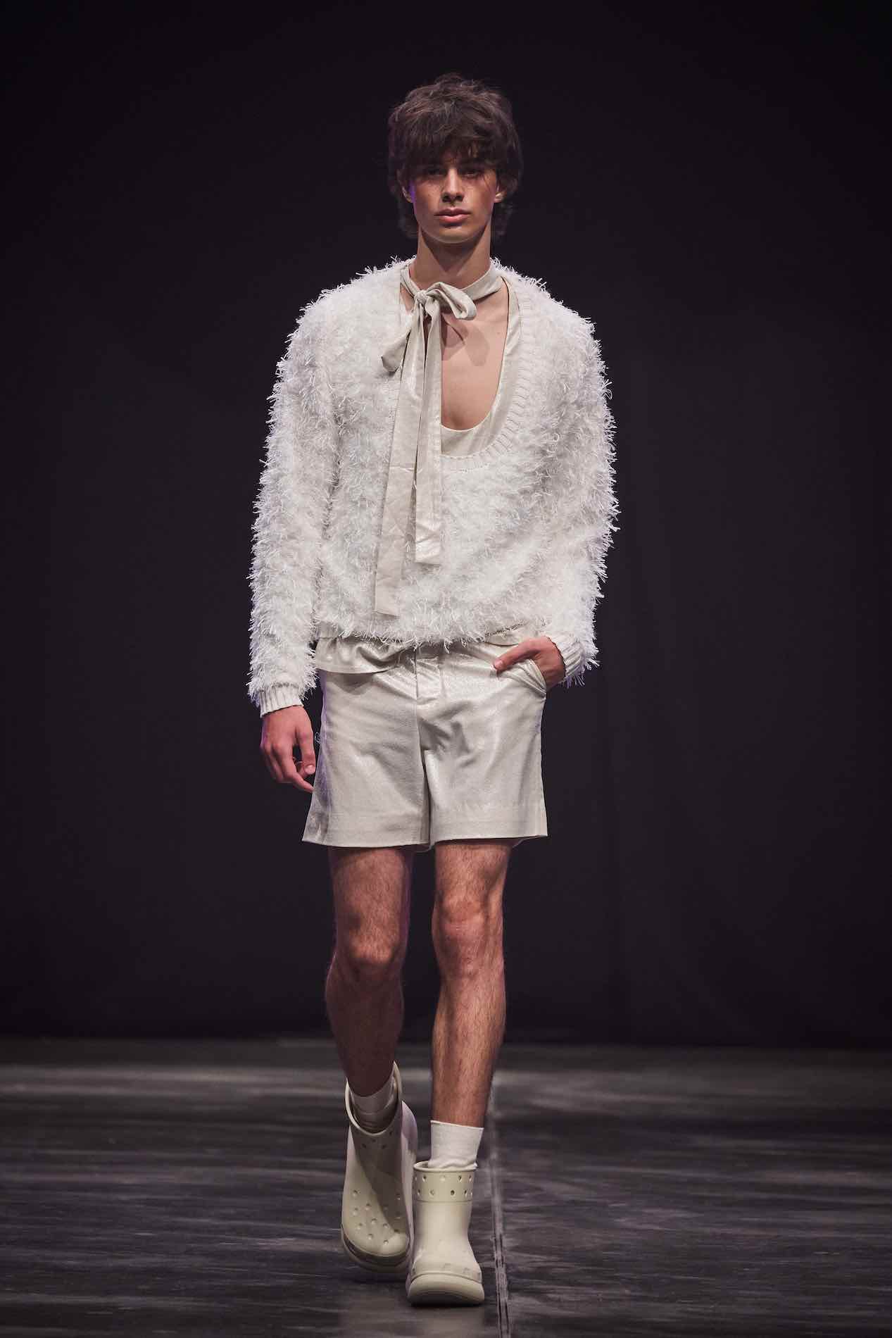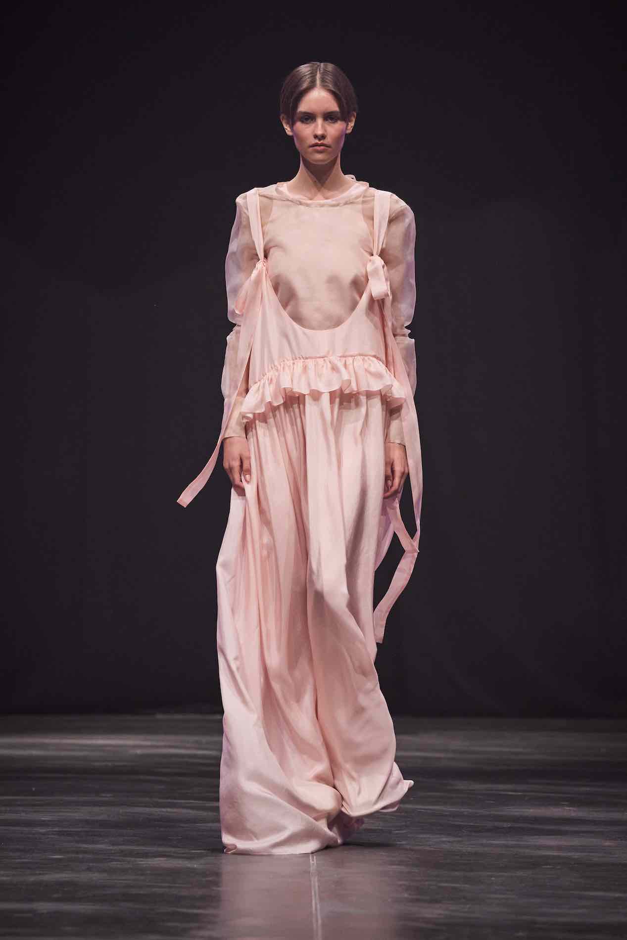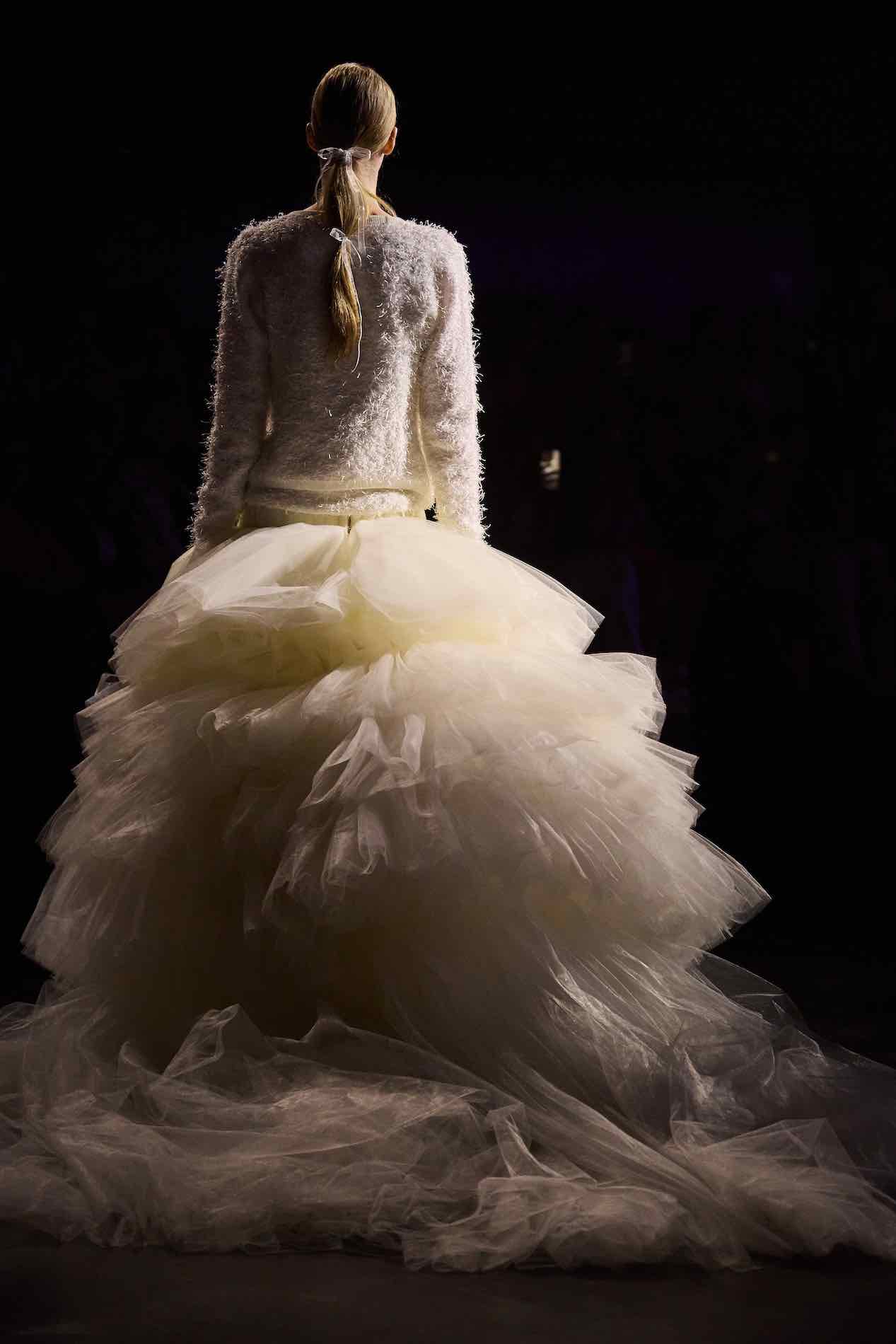 Inspiration für das tiefreichende Kollektionsthema war ein Museumsbesuch. Gründliche Recherche ist eine Säule des Schaffens von Danny Reinke – die Essenz, um einen Kosmos für neue Kollektionen zu kreieren. Ein weiterer, elementarer Baustein des Labels ist der hohe handwerkliche Anspruch. Jedes Kleidungsstück, jedes Detail wird in sorgfältiger Handarbeit im Berliner Atelier gefertigt. Für die neue Kollektion zählte Danny Reinke erstmals eine Couture-Schneiderin aus Paris zu seinem Team. In dieser Zusammenarbeit entstanden Key Pieces der SS24 Kollektion, wie ein Kleid aus über 300 von Hand gehäkelten Blüten und Blättern oder ein Tüllkleid in zartem Rosa mit ausladender Silhouette.