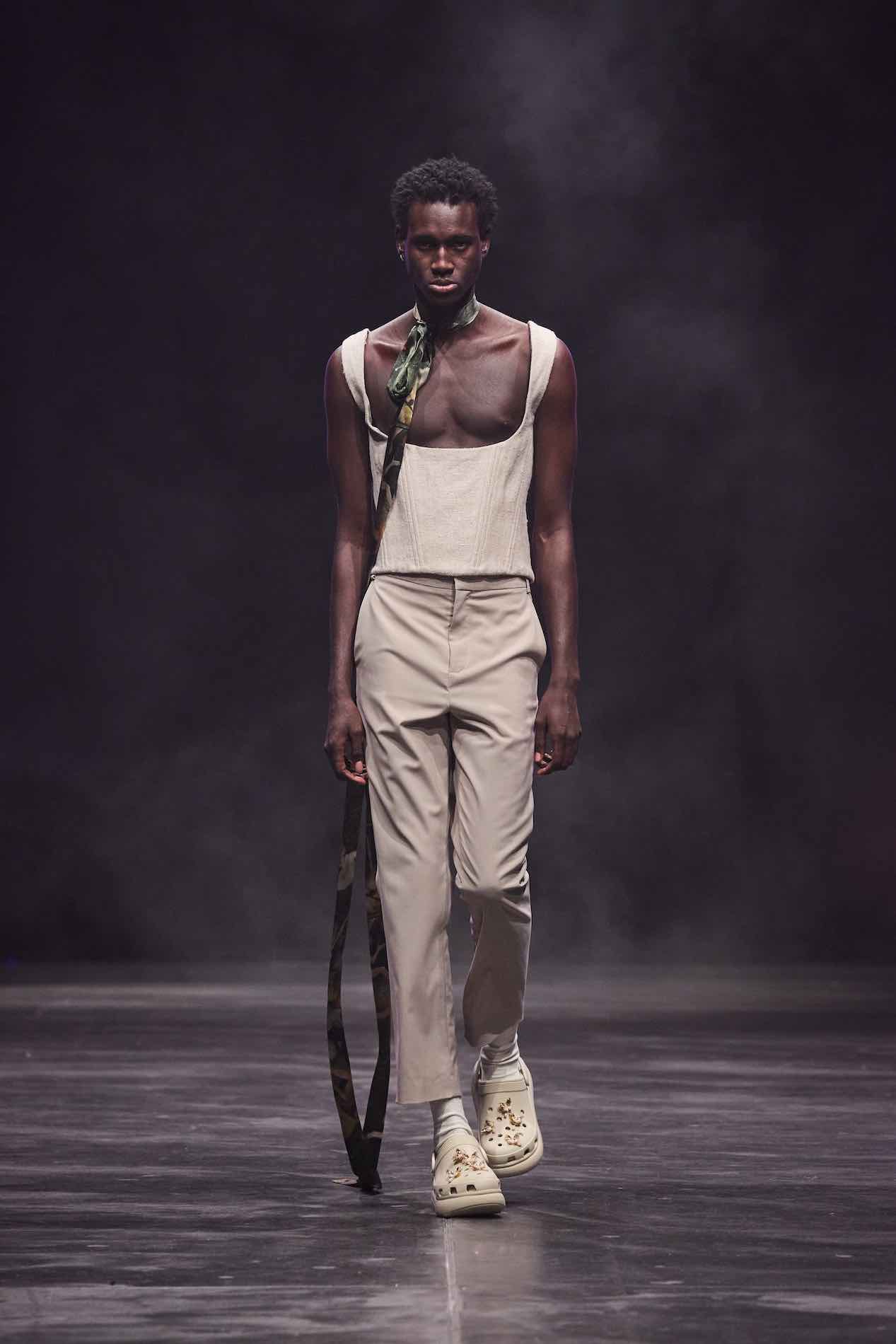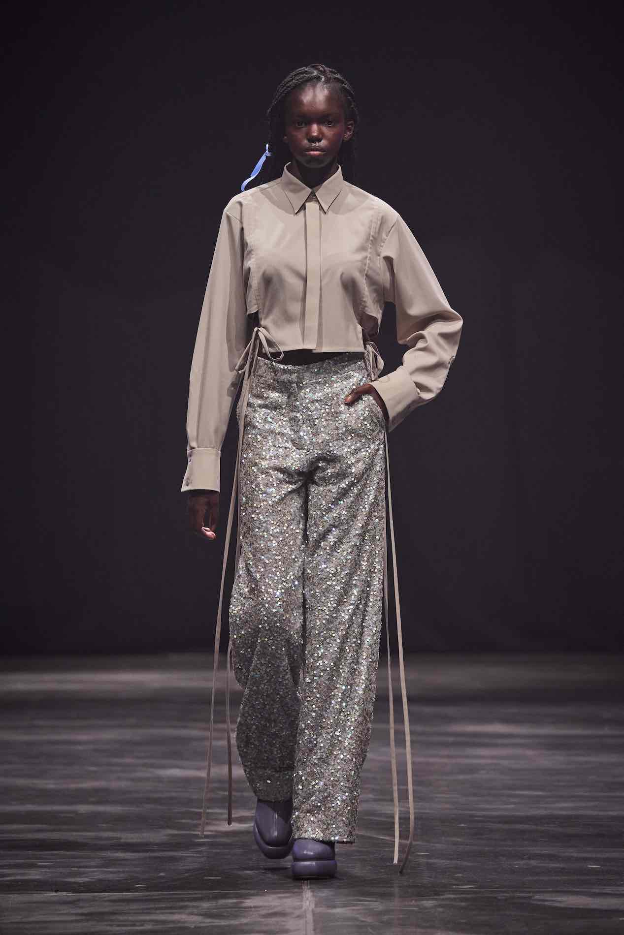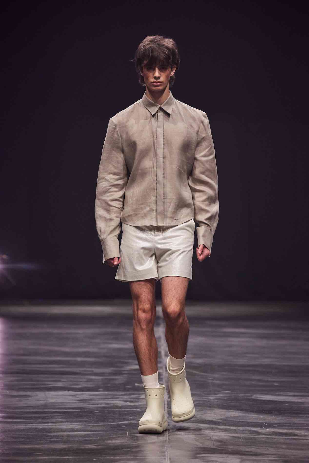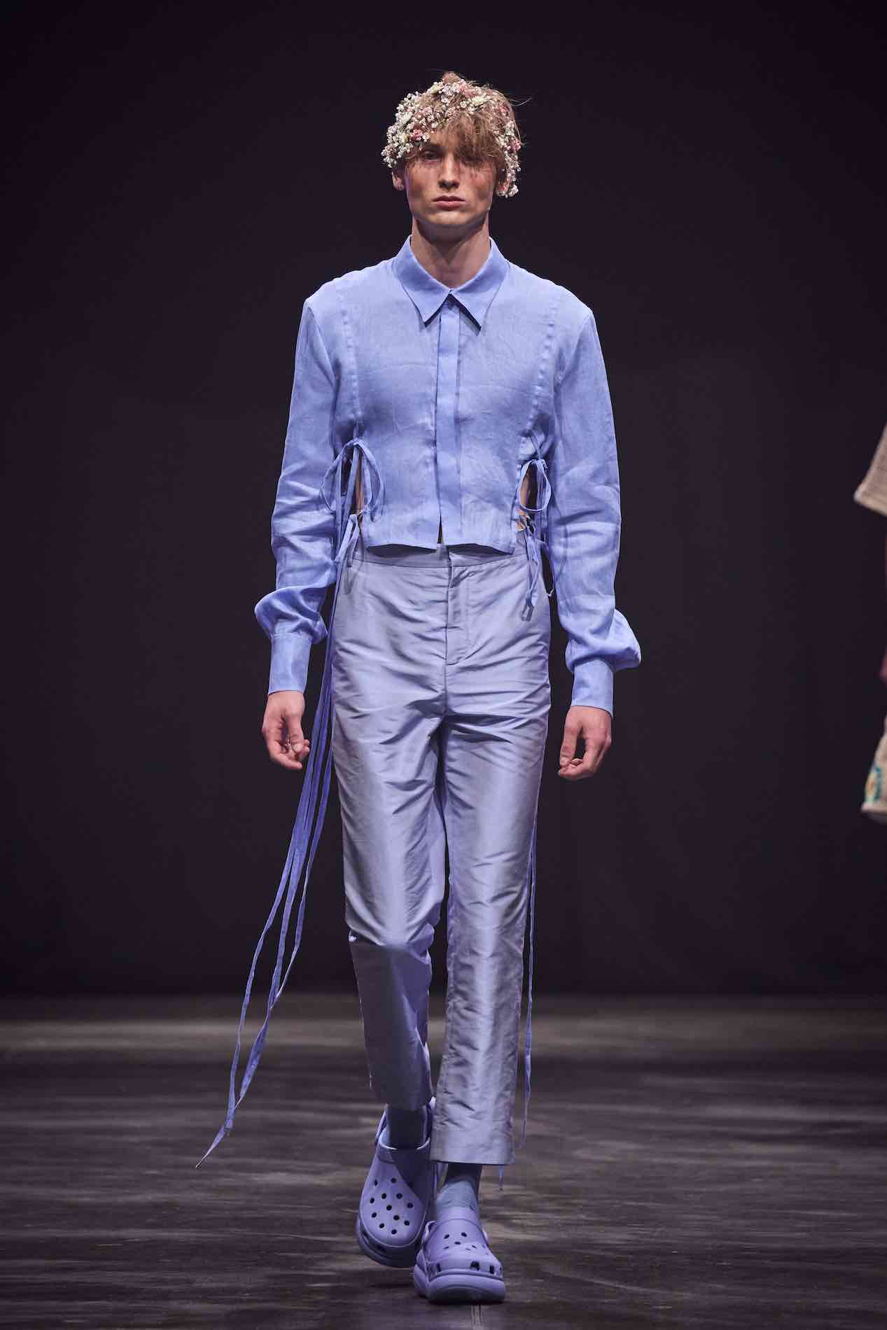 Rosé-Töne in verschiedenen Nuancen sind die Kernfarben dieser SS24-Kollektion. Kombiniert mit Blau, Brün, Greige und Weiß findet sich die zarte Farbpalette hauptsächlich auf Seidenstoffen wie Dupion, Satin und Chiffon wieder. Ein Kernelement der Kollektion sind die eigens erstellten Prints, die den Titel „Lustgarden“ mit Leben erfüllen. Als Vorlage hierfür diente das Gemälde „Garten der Lüste“ des weltberühmten Renaissance-Malers Hieronymus Bosch, das gleichermaßen Namensgeber für die Kollektion ist. Fragmente aus dem Bild wurden in die Prints übertragen, erweitert und/oder neu zusammengefügt.