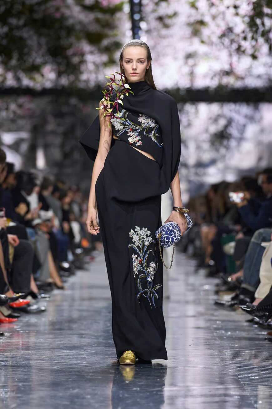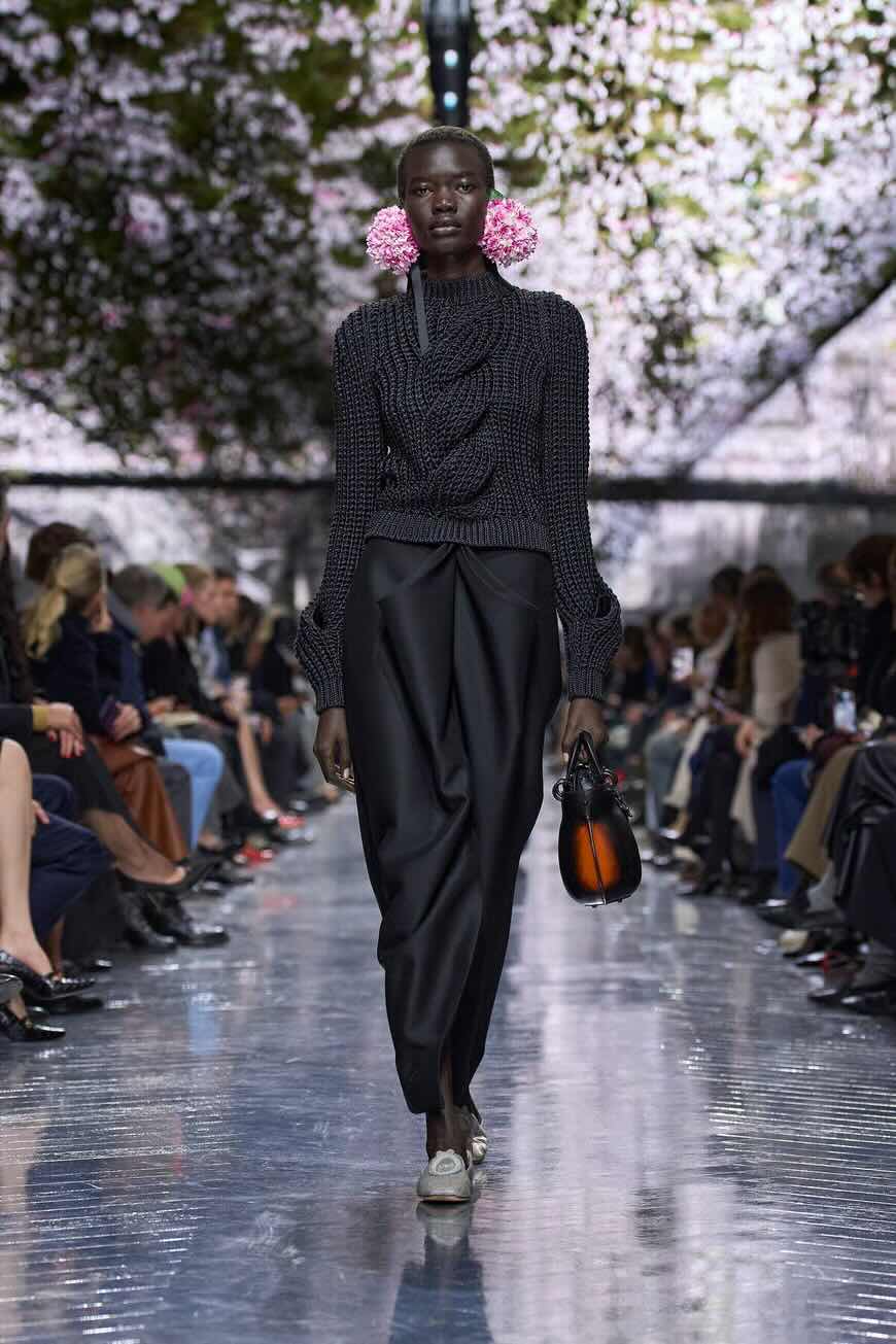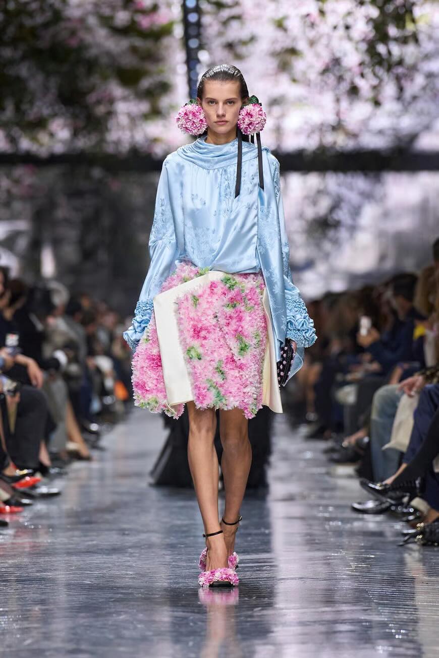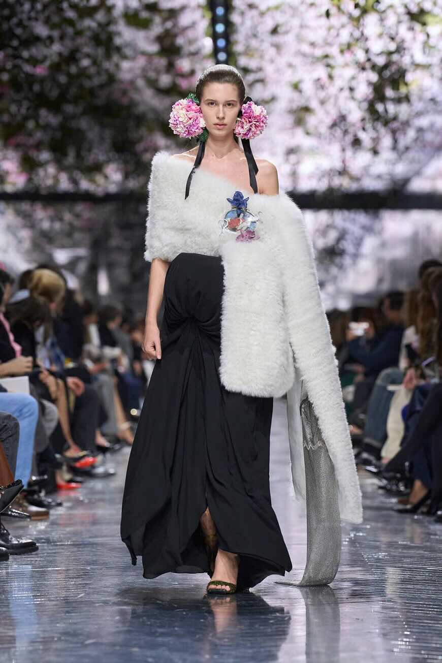 Im Zentrum steht die Form. Taillen werden sanft betont, Schultern weich modelliert, Röcke öffnen sich in eleganten, fließenden Linien. Die Anklänge an die ikonische Bar-Silhouette wirken vertraut – und doch spürbar weiterentwickelt.