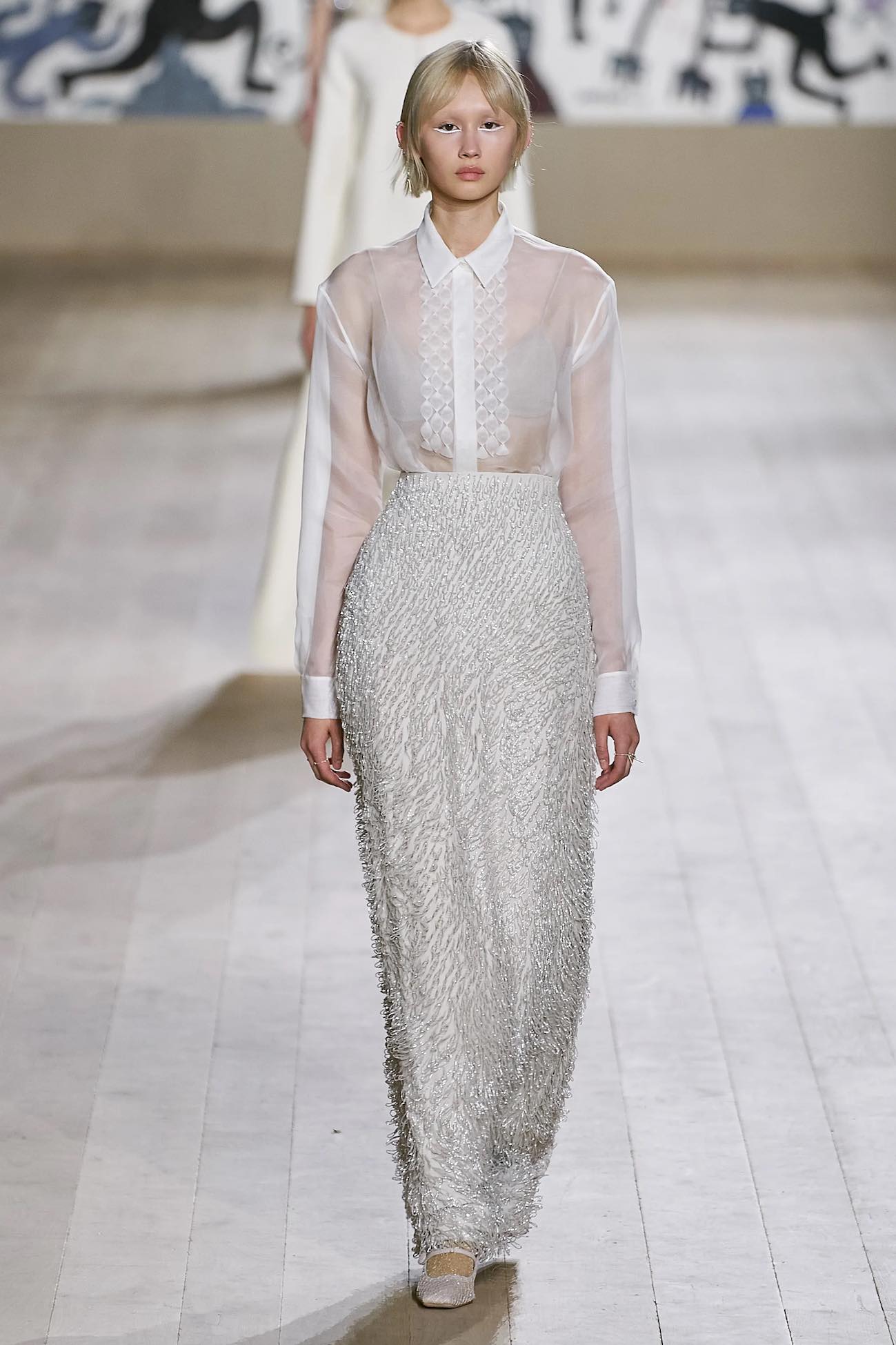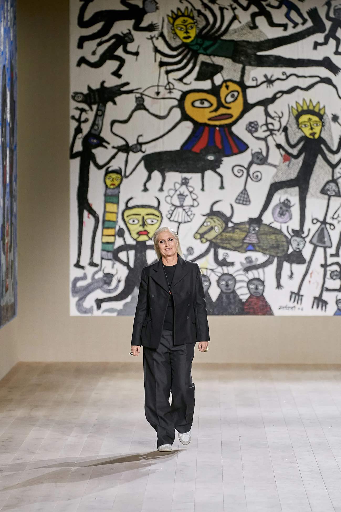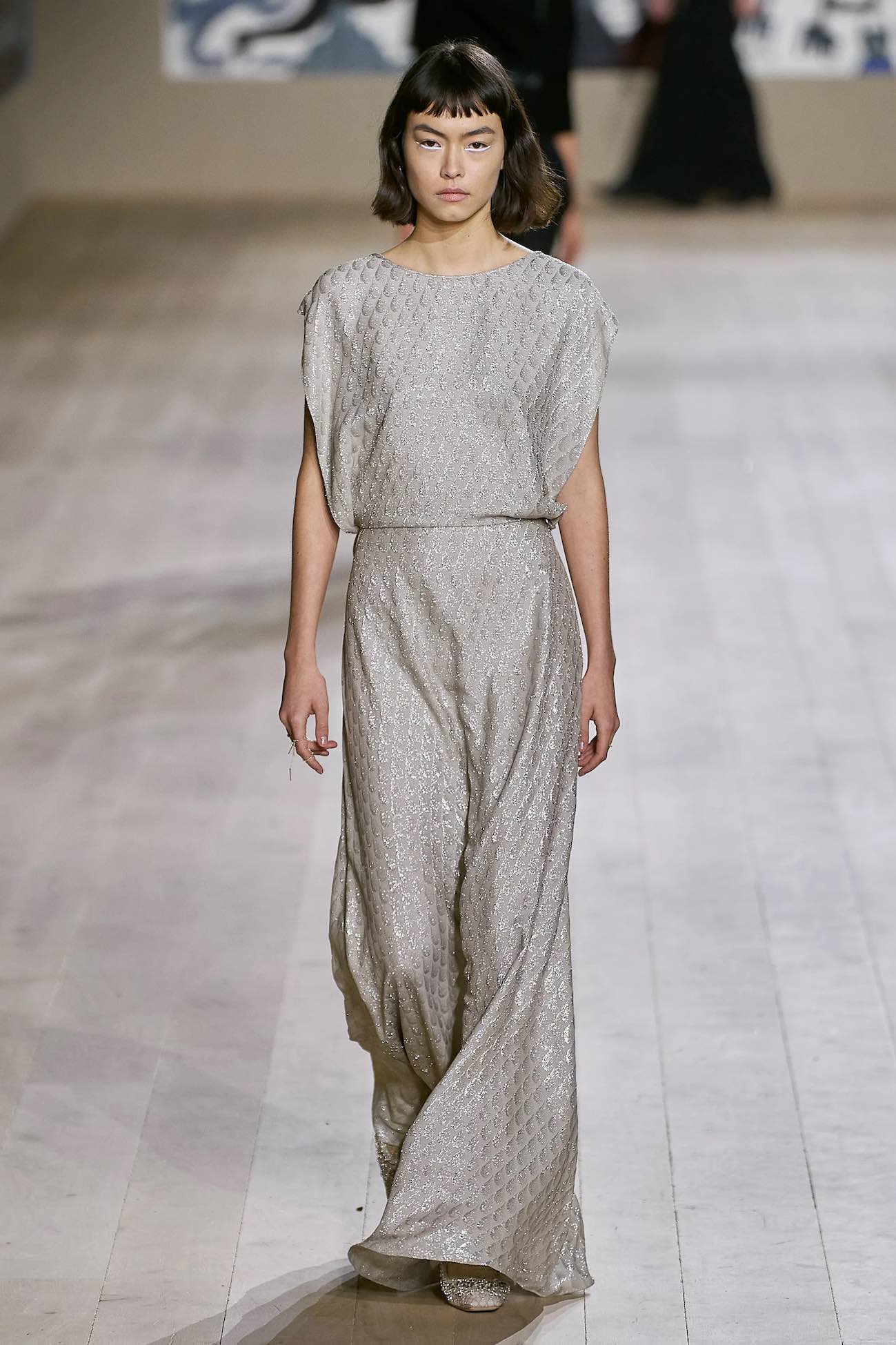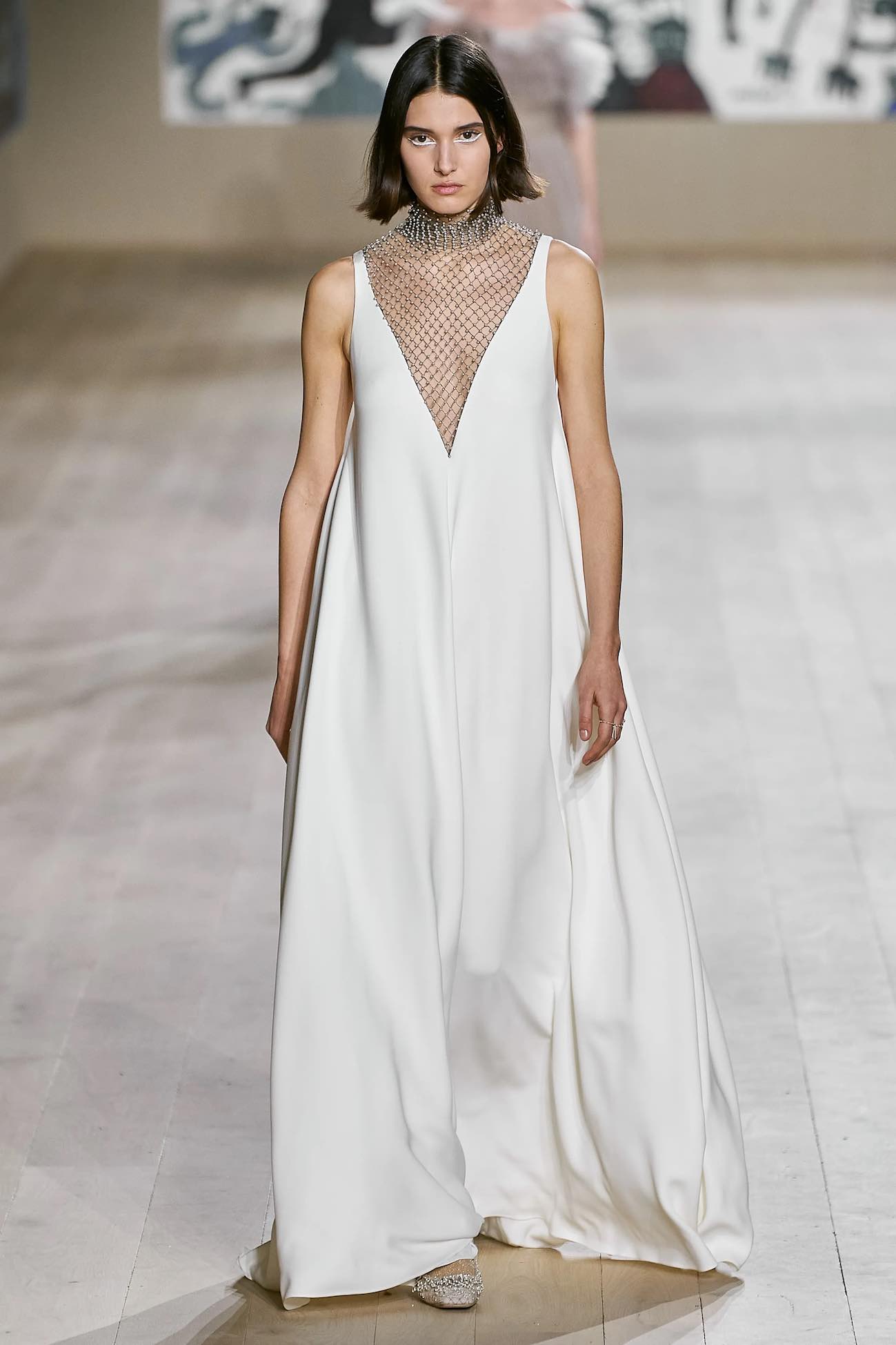 January 2022, Diese wunderbare Kollektion steht mit edlen und aufwändigen Stickereien mehr den je für eine hochwertige Handwerkskunst. Ein Thema, dass Grazia Maria Chiuri auch im Bühnenbild der Show zum Ausdruck brachte. 380 Handwerker brauchten 280.000 Stunden, um die 340 Quadratmeter große Installation zu besticken, die vom 25. bis 30. Januar als kurzlebige Kunstausstellung für die Öffentlichkeit zugänglich sein wird.