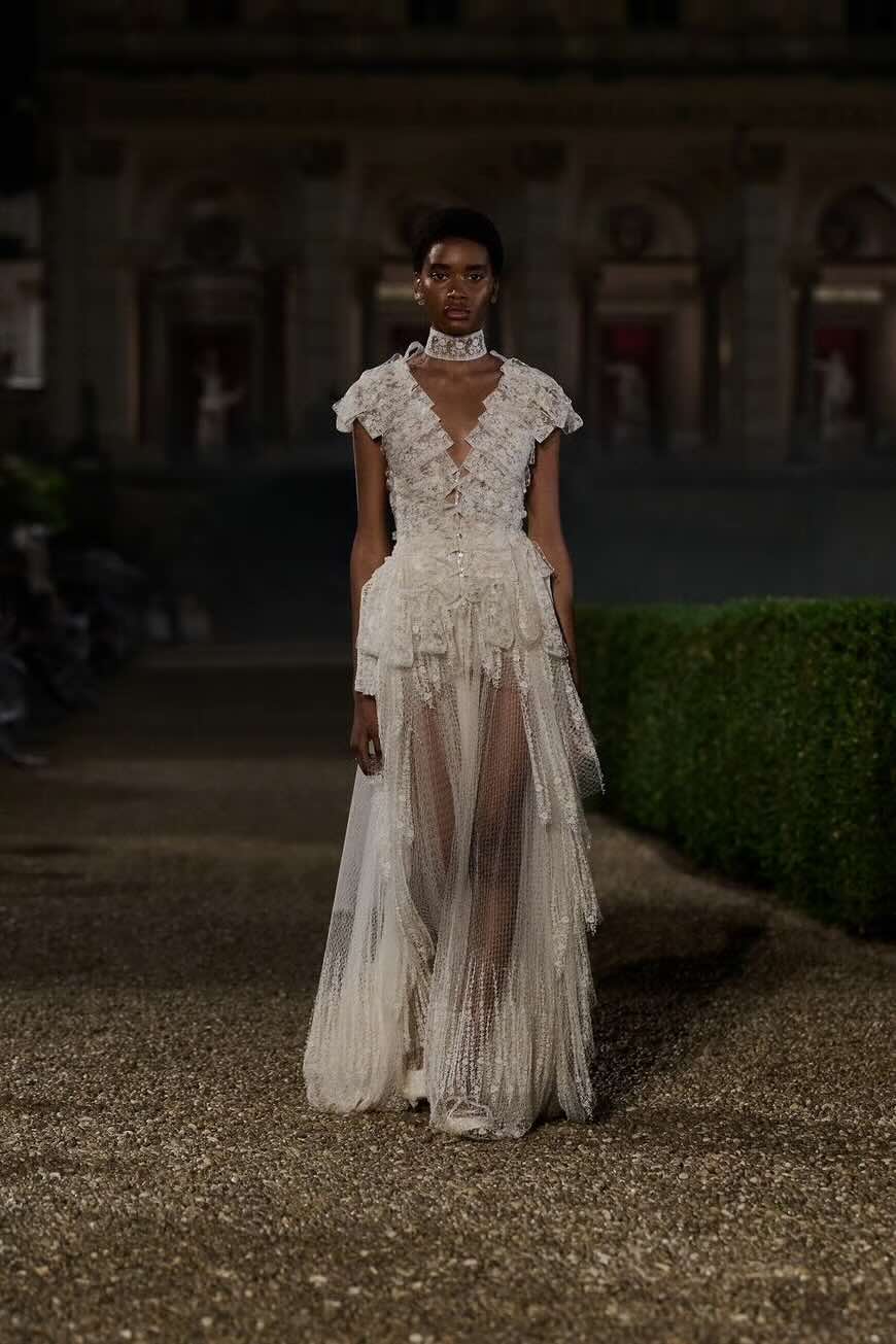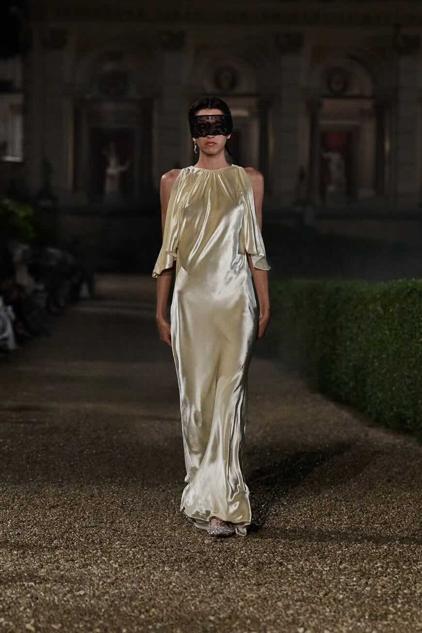Mit ihrer neuesten Präsentation im Garten der römischen Villa Albani Torlonia hebt Maria Grazia Chiuri das Konzept der Fashion Show auf ein neues künstlerisches Niveau – eine Hommage an das barocke Freilufttheater, an italienisches Kulturerbe und die Magie der Inszenierung.