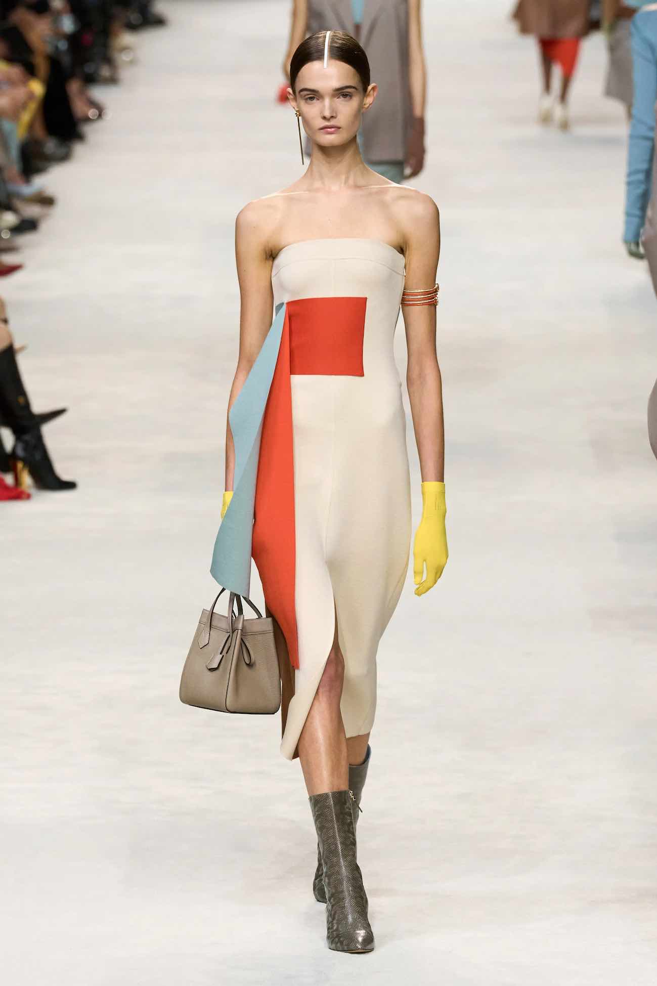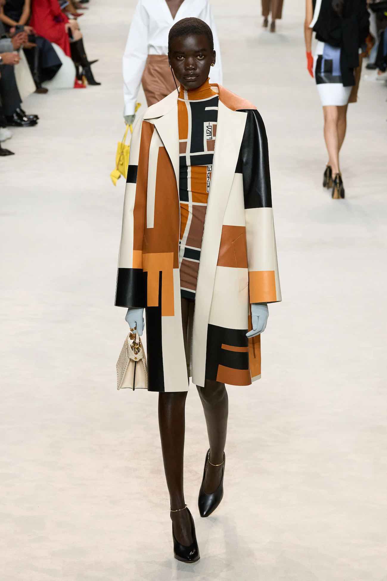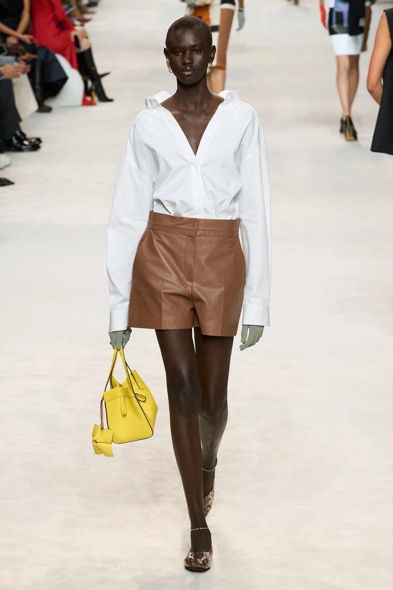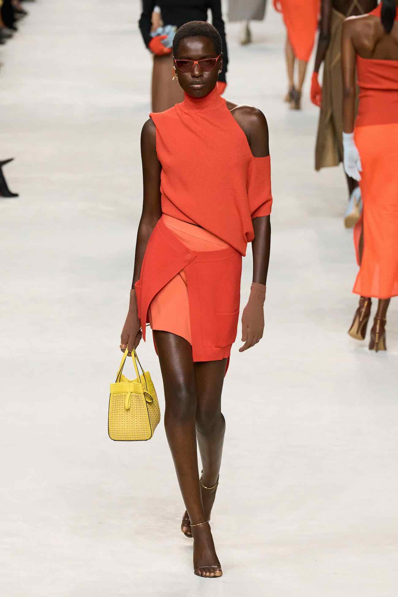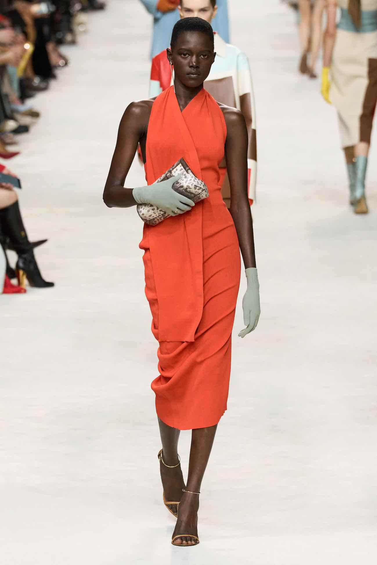 Kim Jones lies sich für die Frühjahr/Sommer-Kollektion 2024 von den antiken Ruinen und der Architektur Roms inspirieren. Statuenhafte Silhouetten in Blau- und Grautönen gemixt mit Orange, Gelb und Braun dominieren die Kollektion. Strick und Seide umhüllten sanft und locker die Körper der Models.