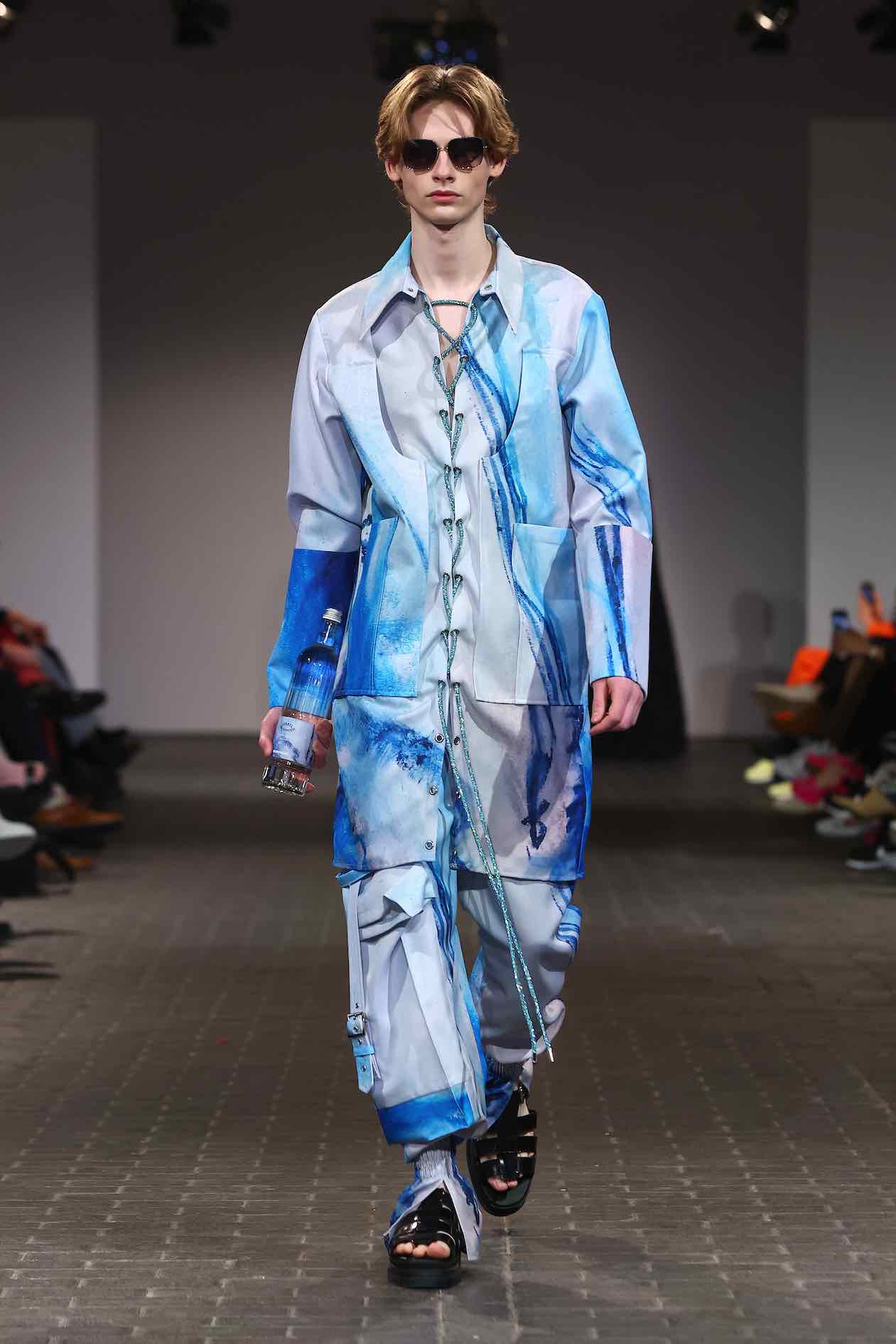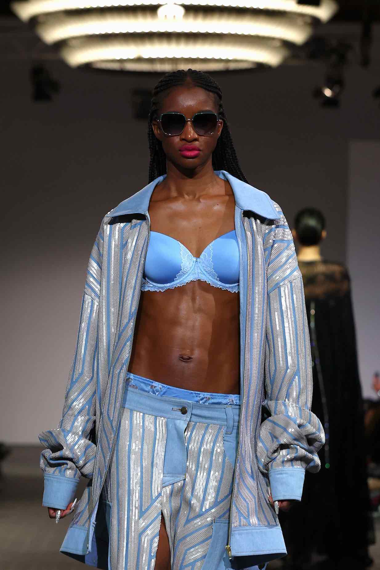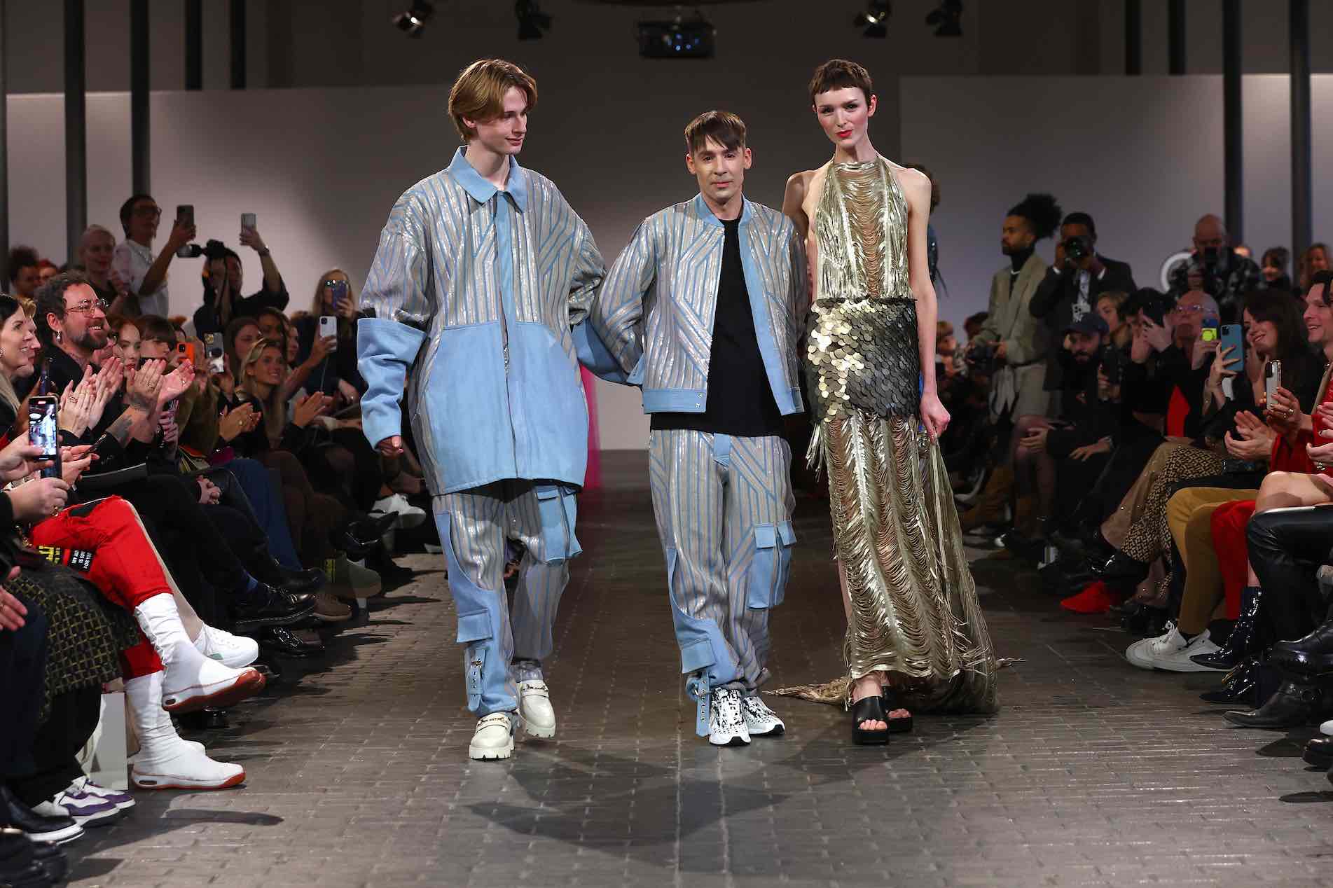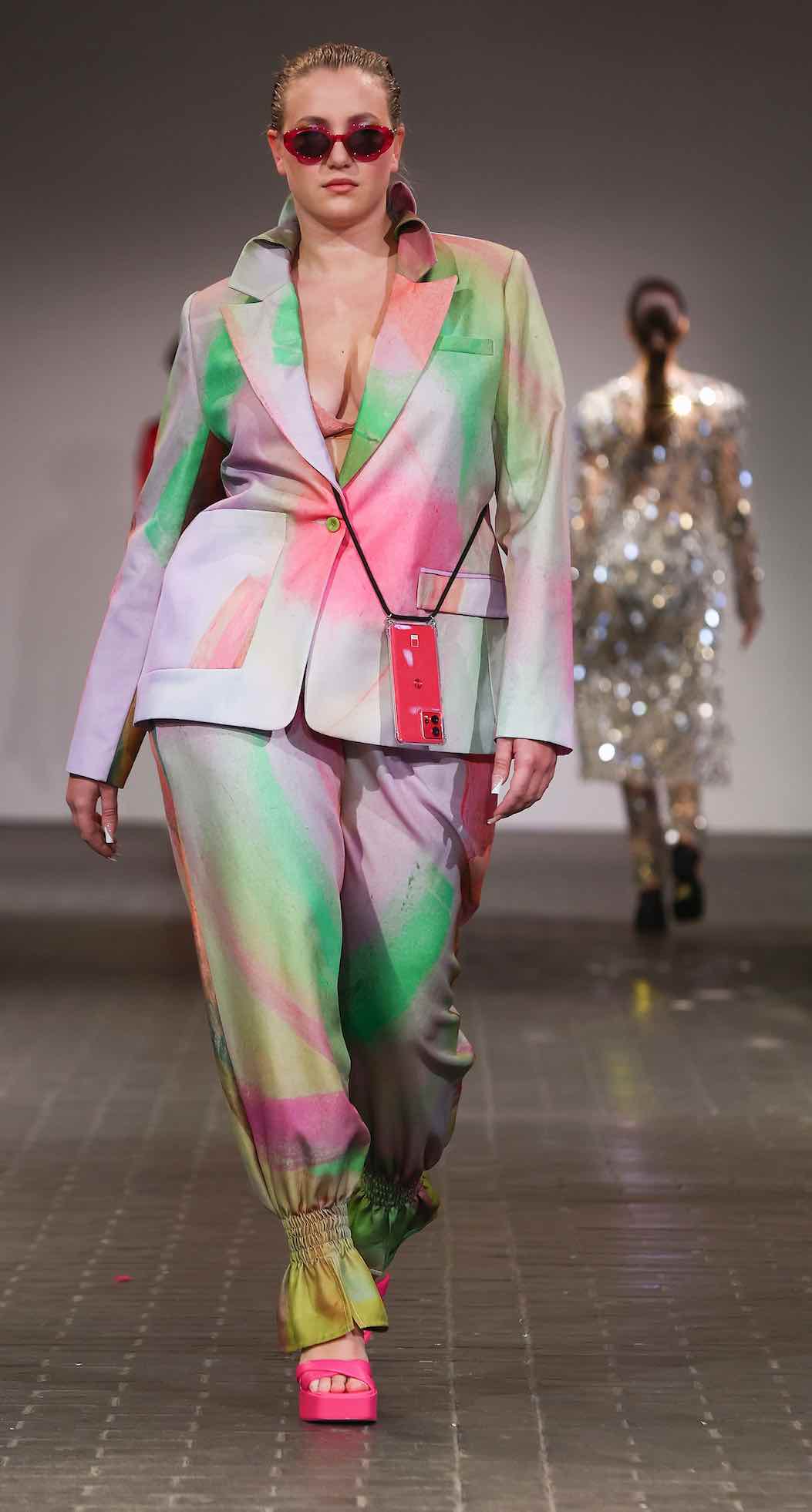So atemberaubend wie die Länge des Laufstegs waren auch die 52 Looks, die unterstützt von der fulminanten Live-Performance der Berliner Band Fuffifufzich darüber schwebten. 39 Damen- und 13 Männer-Looks präsentierten einen progressiven Mix aus Evening-Wear und Streetstyle.