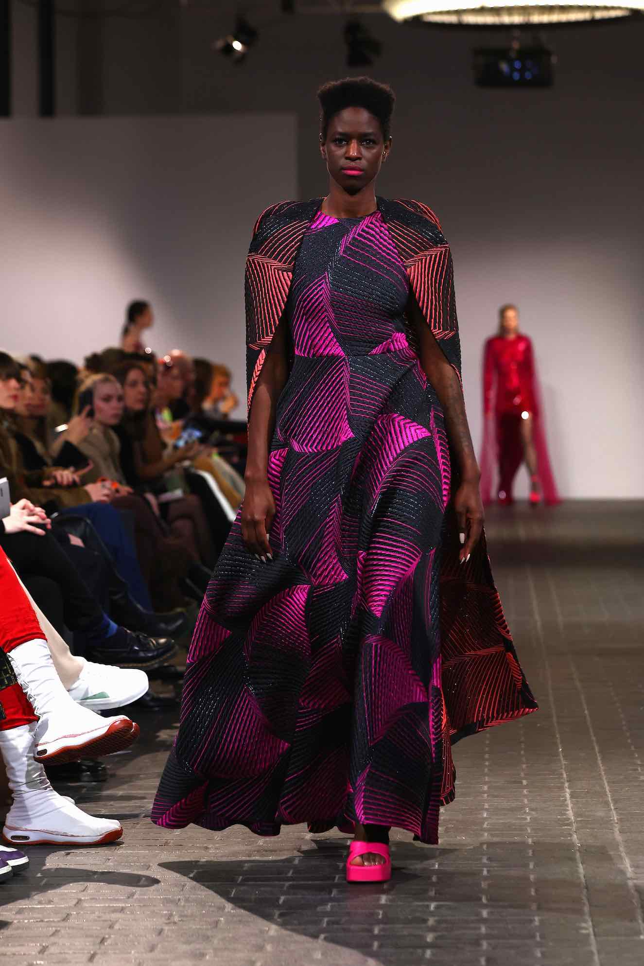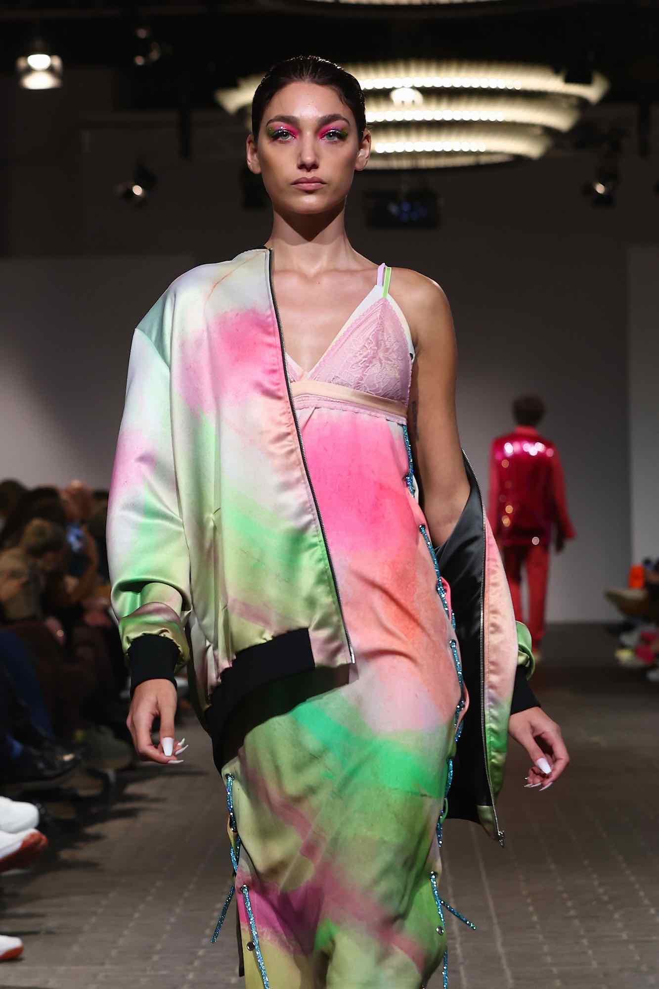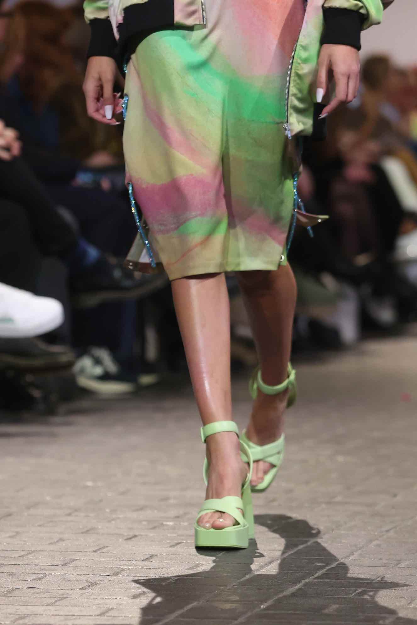 Eine weitere Premiere gab es im Rahmen der Fashion-Kooperation mit NEWD.Tamaris: Zum ersten Mal designte Kilian Kerner einen eigenen Schuh für das Schuhlabel: Der NWD-060 vervollständigt in einer perfekt orchestrierten Farbpalette aus Black, Pink und Lime die Damen-Looks der Symphonie Kollektion und ist direkt nach der Show limitiert auf newd.tamaris.com erhältlich.