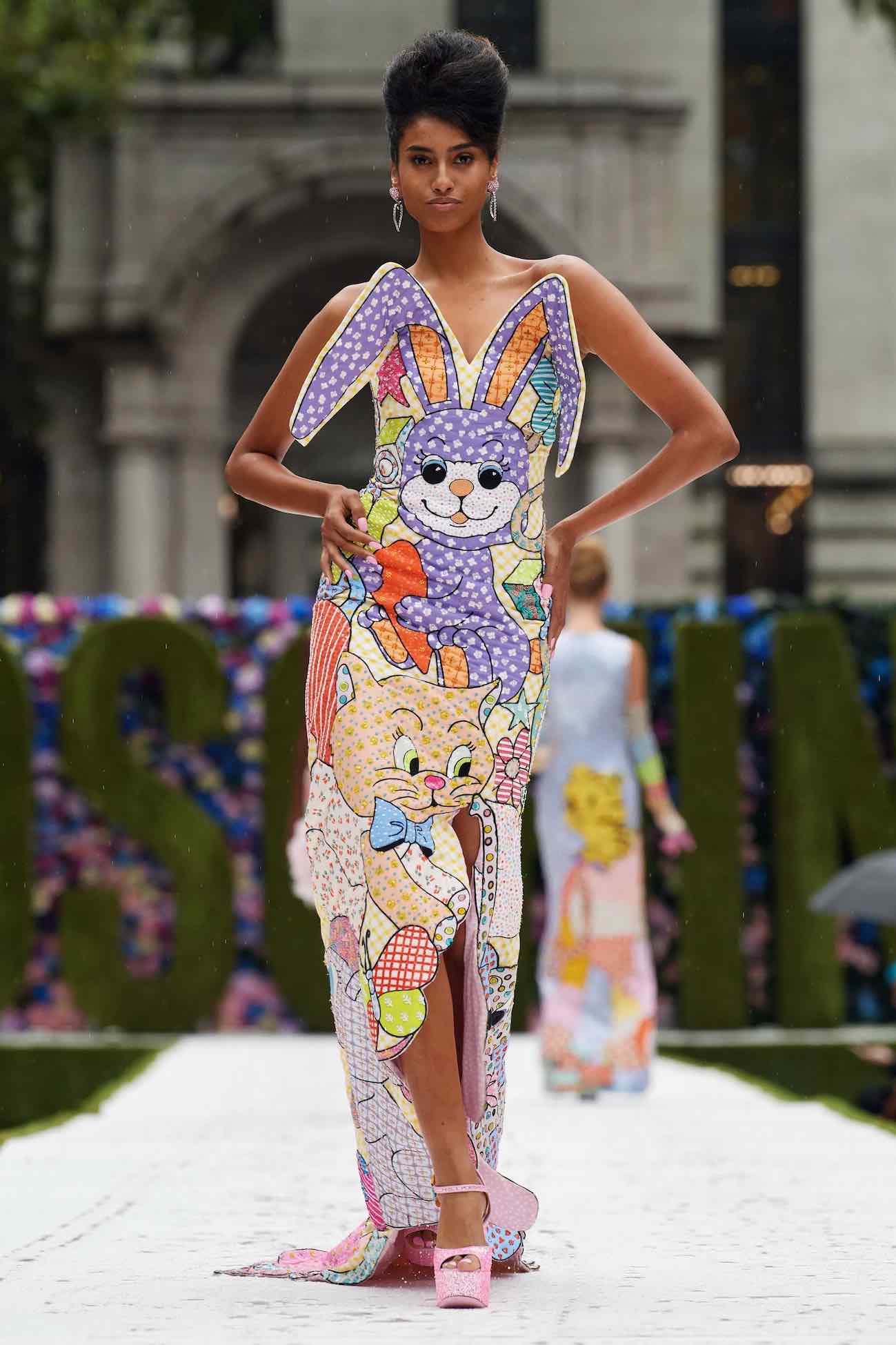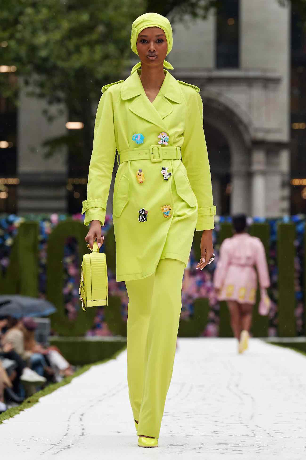 Unter dem Motto „Ladies who lunch“ zeigte Moschino eine Kollektion, die weniger politisch gemeint oder wichtige Themen unserer Zeit ansprechen sollte – oder vielleicht doch? Es ging um Freude und Spass, kurze Jacken, kleine schmale Röcke in bunten Pastelltönen, eine Erinnerung an die 90s und vor allem an die bezaubernde, lustige Fran Fine aus der US-Serie „The Nanny“. Das war es wohl, was uns Jeremy Scott mit seiner Kollektion für den Frühling/Sommer 2022 sagen wollte – habt einfach Spass!