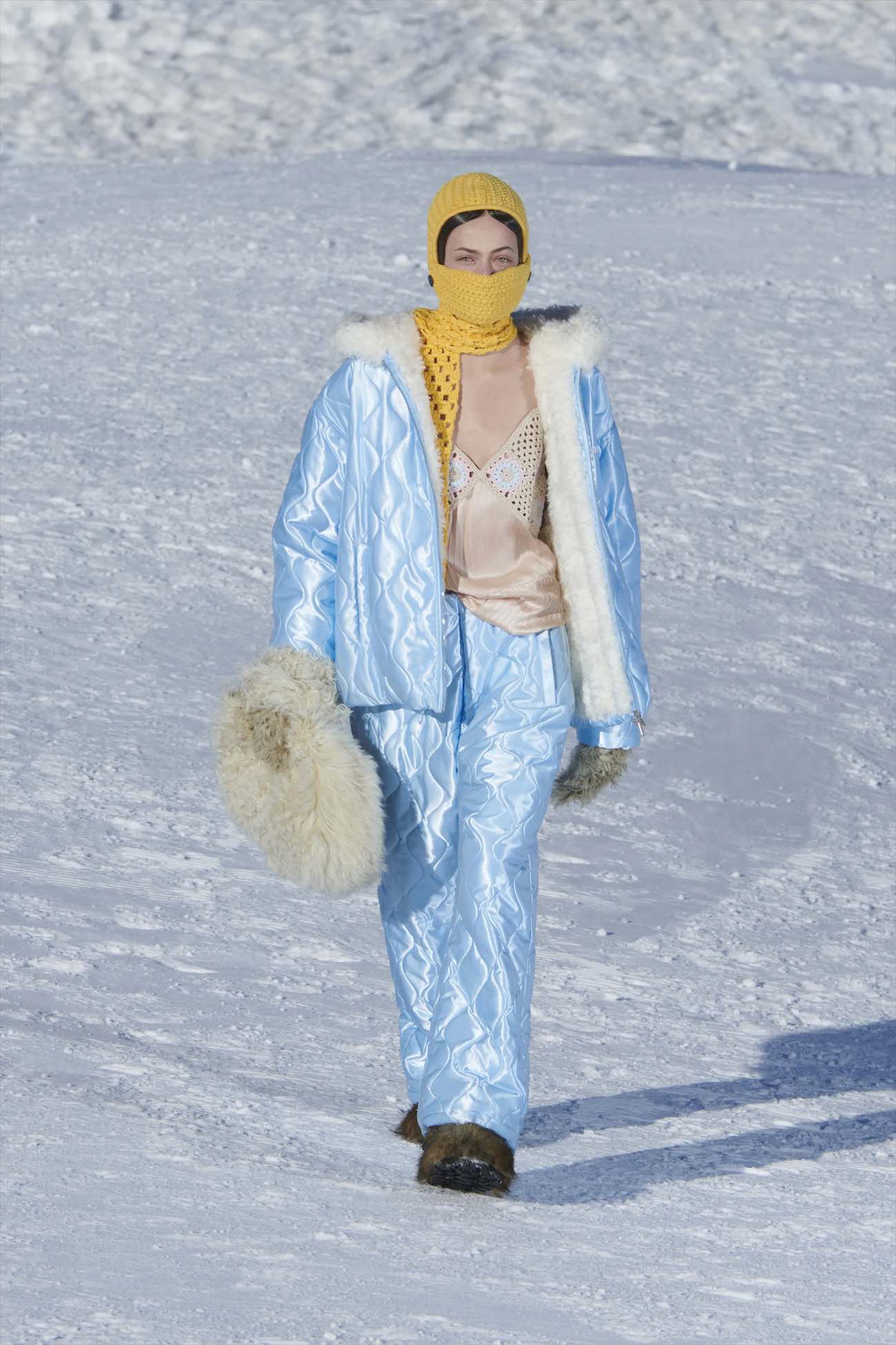 Inzwischen wohl ein offenes Geheimnis ohne Stepp geht diesen Winter überhaupt nichts. Die Grundausstattung zumindest eine Stepp-Jacke oder ein Stepp-Mantel. Für die echten Fans geht aber noch viel mehr, ein „Muss“ sind Stepp-Taschen und Steppschuhe als Boots oder Loafer und die Fashionistas, gehen noch weiter, was vor Jahrzehnten die gesteppte Ski-Hose ist heute ein absoluter Hingucker als Streetstyle-Modell – siehe Chanel. Aber MIU MIU zeigt uns die Königsdisziplin: Röcke, Pants oder Stiefel, egal wie mächtig dieses Trendteil auch wirkt – MIU MIU macht Stepp zum Keypiece der Saison!